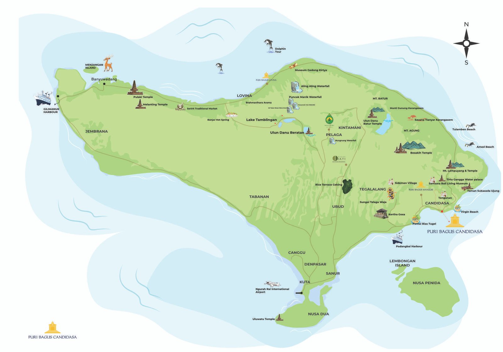 | Denpasar | ± 54 Km | (1 hour 20 mnt by car) |