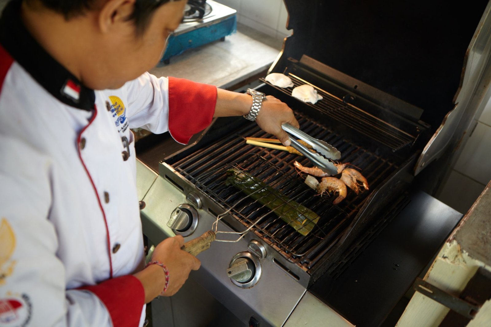 Puri Bagus Candidasa’s Grill House is a seaside dining venue offering a delightful selection of grilled seafood and meats. Nestled by the sea, this open-air dining venue offers a unique culinary experience using locally sourced ingredients. Enjoy the relaxed ambiance as you savor freshly prepared dishes while taking in the breathtaking sunset over the water.