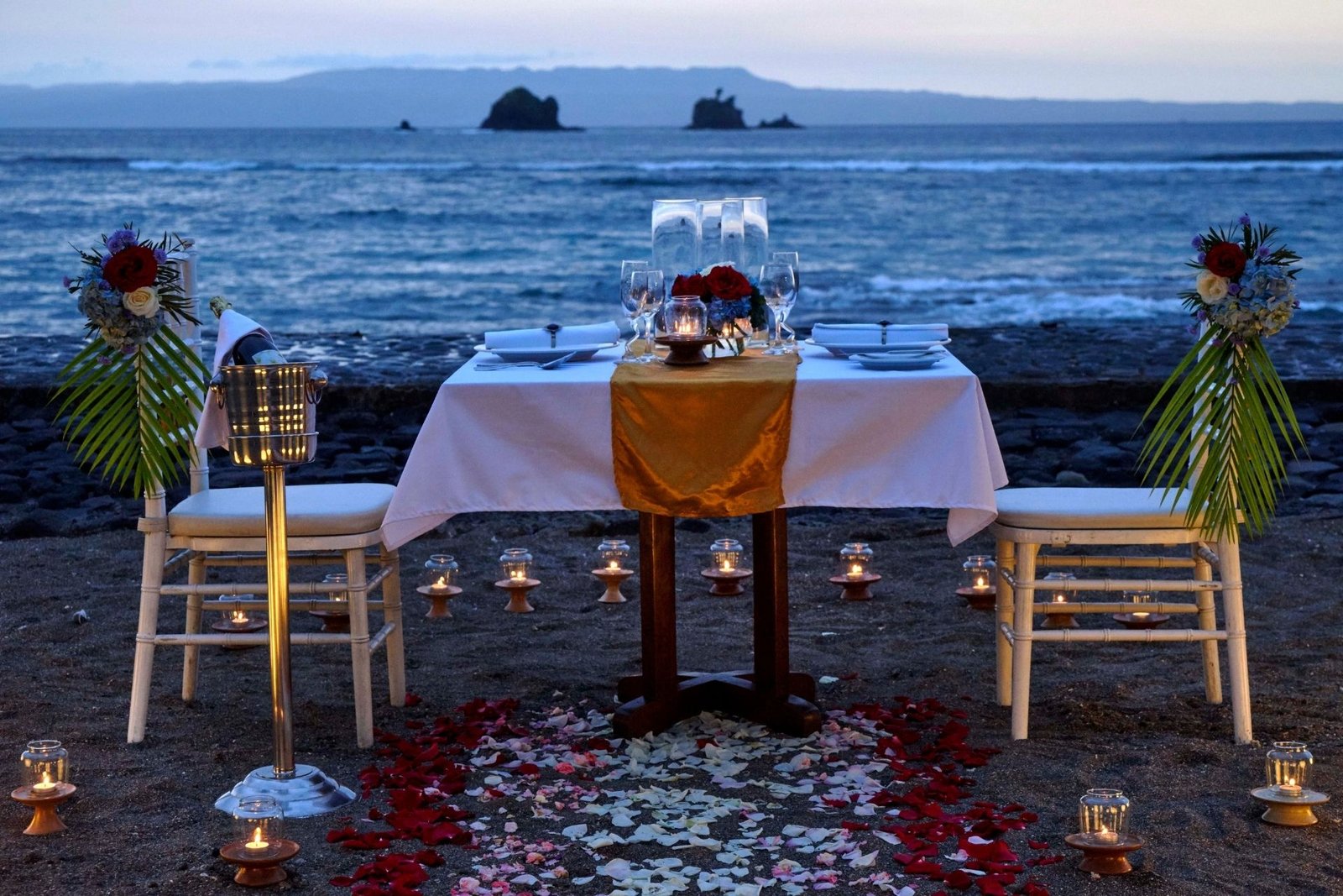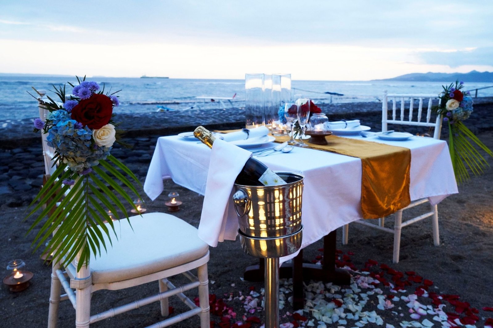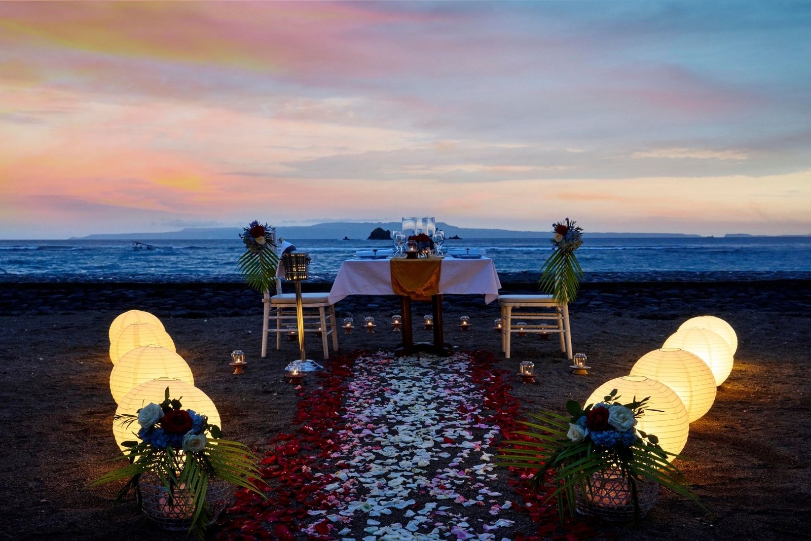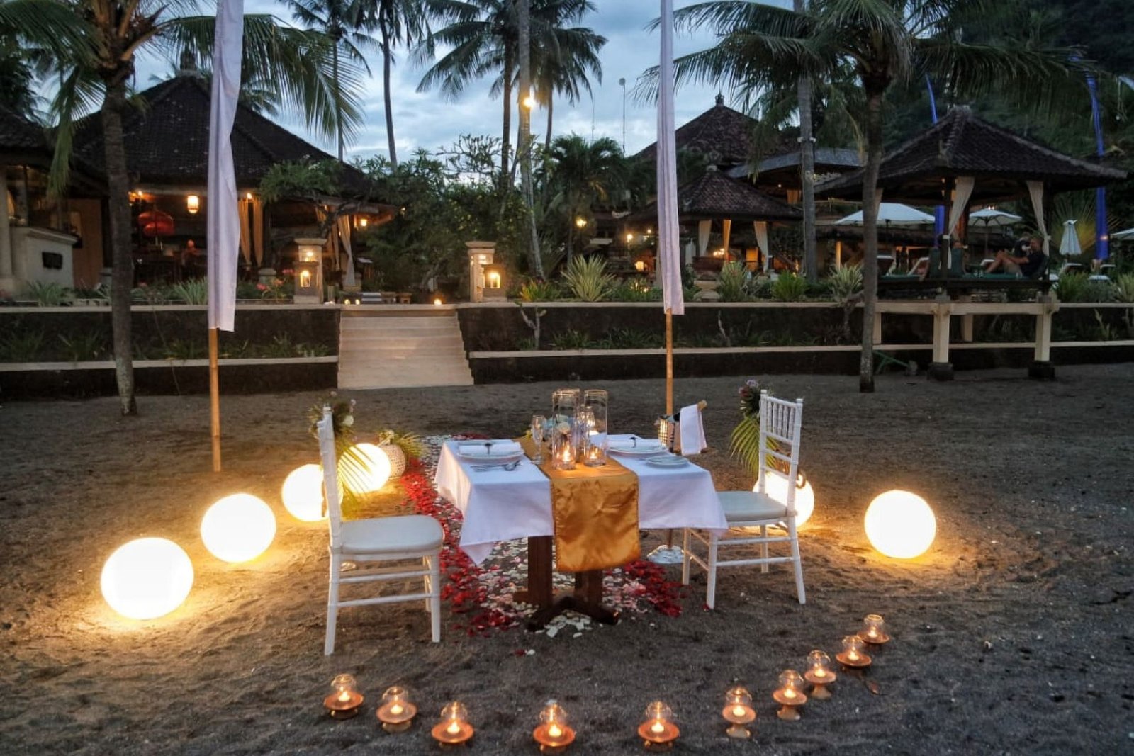 Celebrate love in paradise with private romantic dinner at Puri Bagus Candidasa. Imagine dining under the stars, with the soft glow of candlelight reflecting off the ocean as gentle waves serenade you in the background. Your exclusive table is set in a secluded spot by the beach or in a lush garden at Jaya Spa, creating an intimate ambiance just for you and your partner. Indulge in a gourmet meal crafted by our chef, featuring the freshest local ingredients and flavors that spark the senses. It is not just dinner—a moment of pure romance, creating memories to last a lifetime.