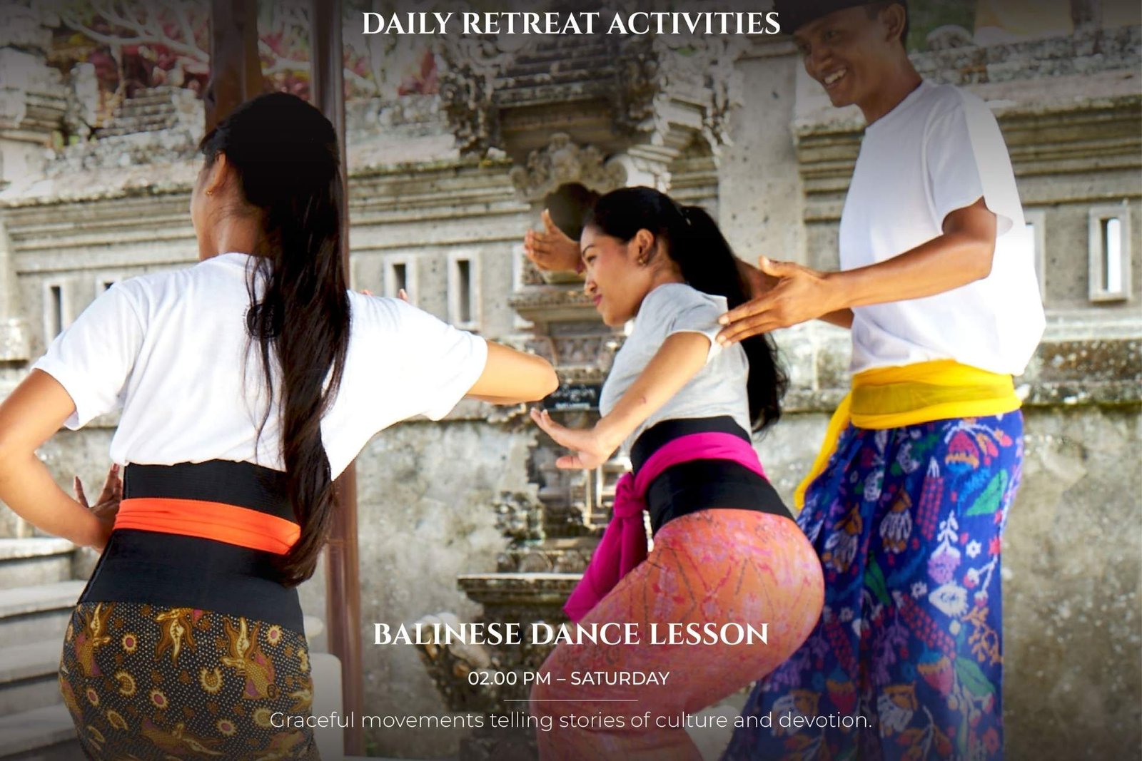 You will be guided by our stay and get introduced to the basic of Balinese Dance. The beauty of Balinese dance goes way beyond what meets the eye: it’s a centuries-old tradition that is an integral part of culture, religious belief and social life on this Indonesian island.