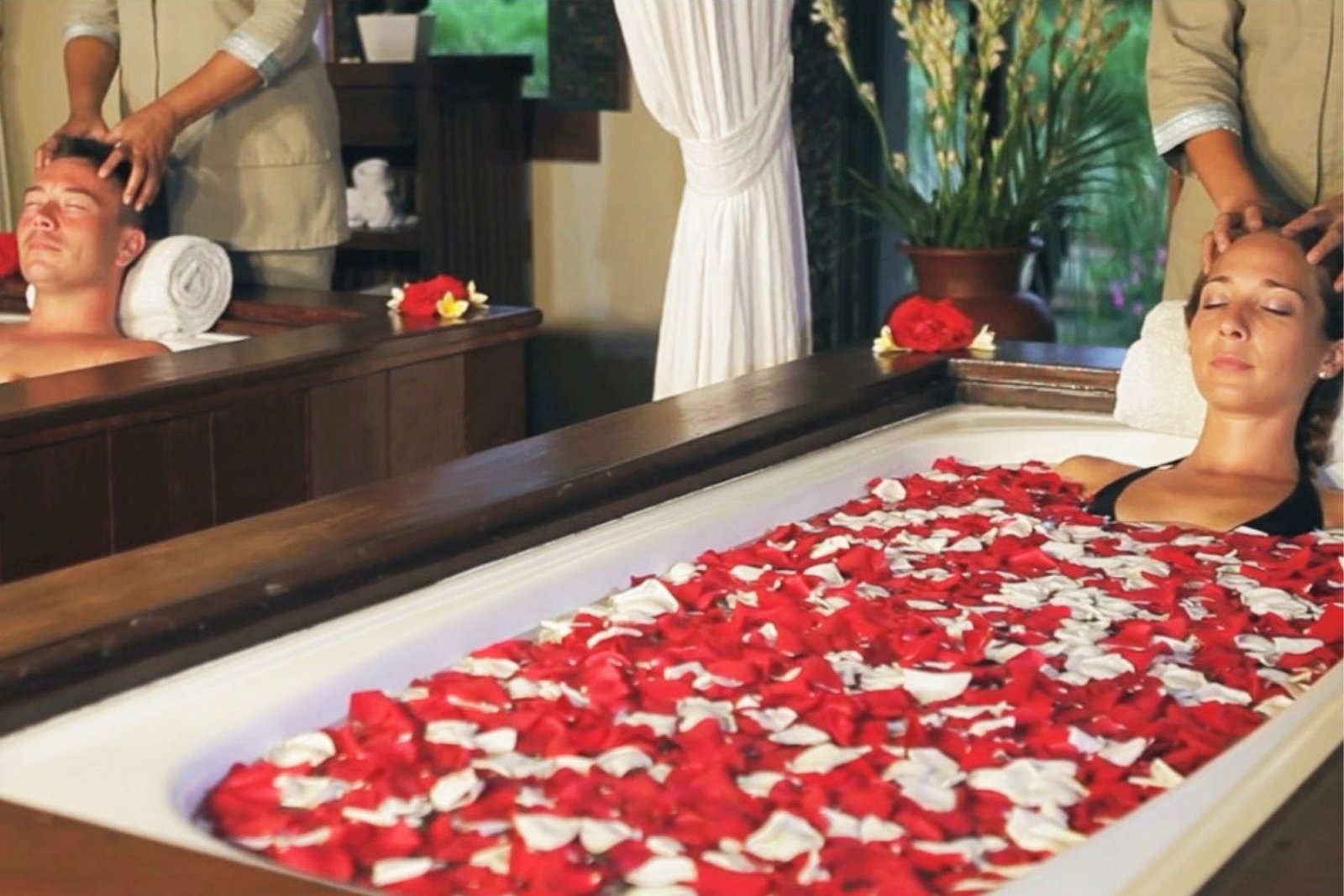 Following a brief rinse off shower, you will relax in a warm Balinese herbal bath topped with flower petals and concluding the treatment with a Tenganan Face Cleansing.