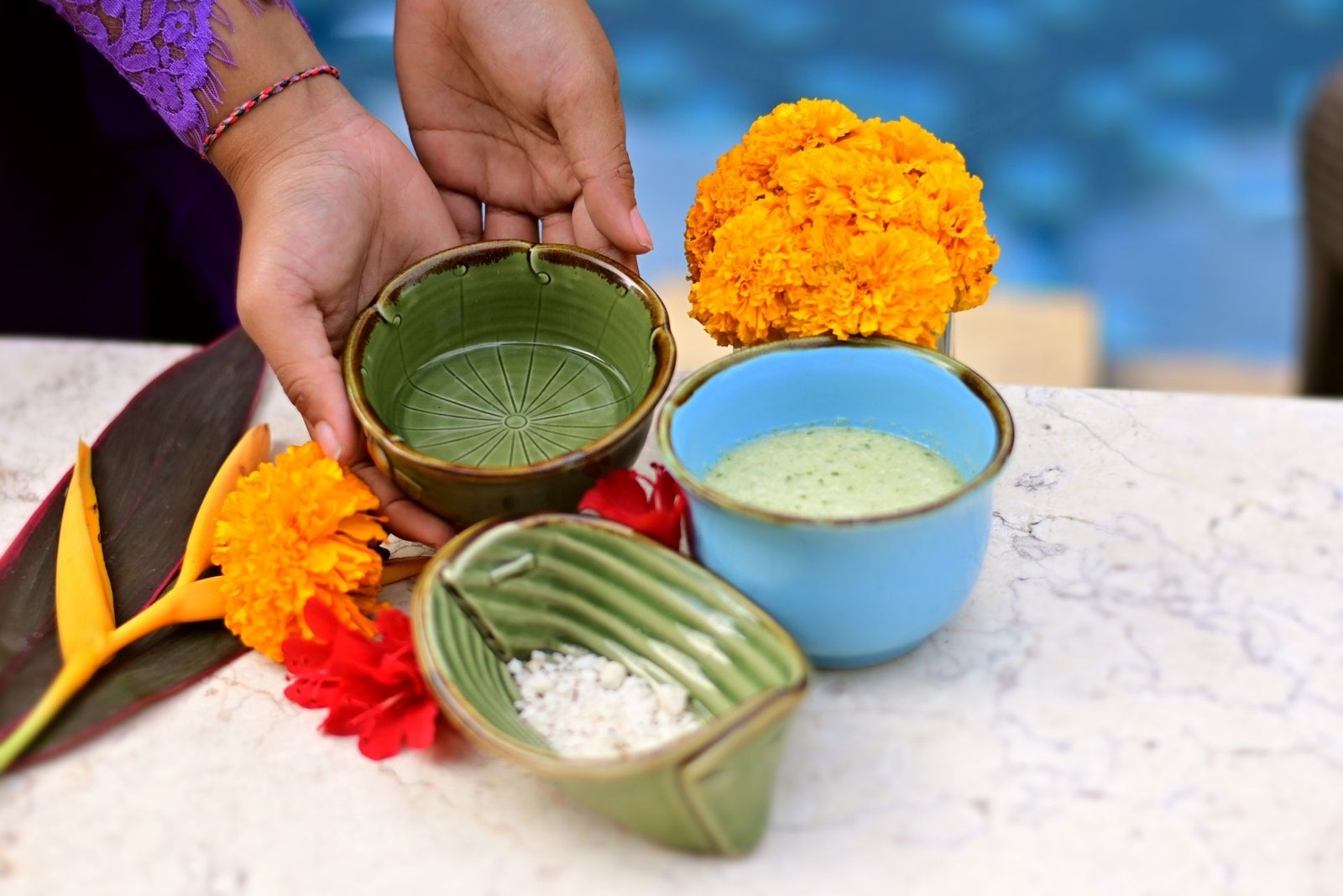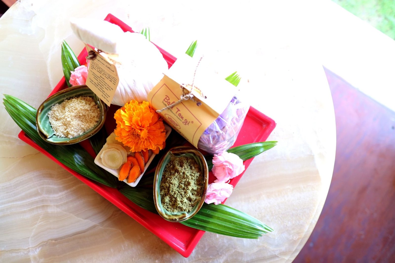 • Balinese herbal with flower petals and fresh natural facial