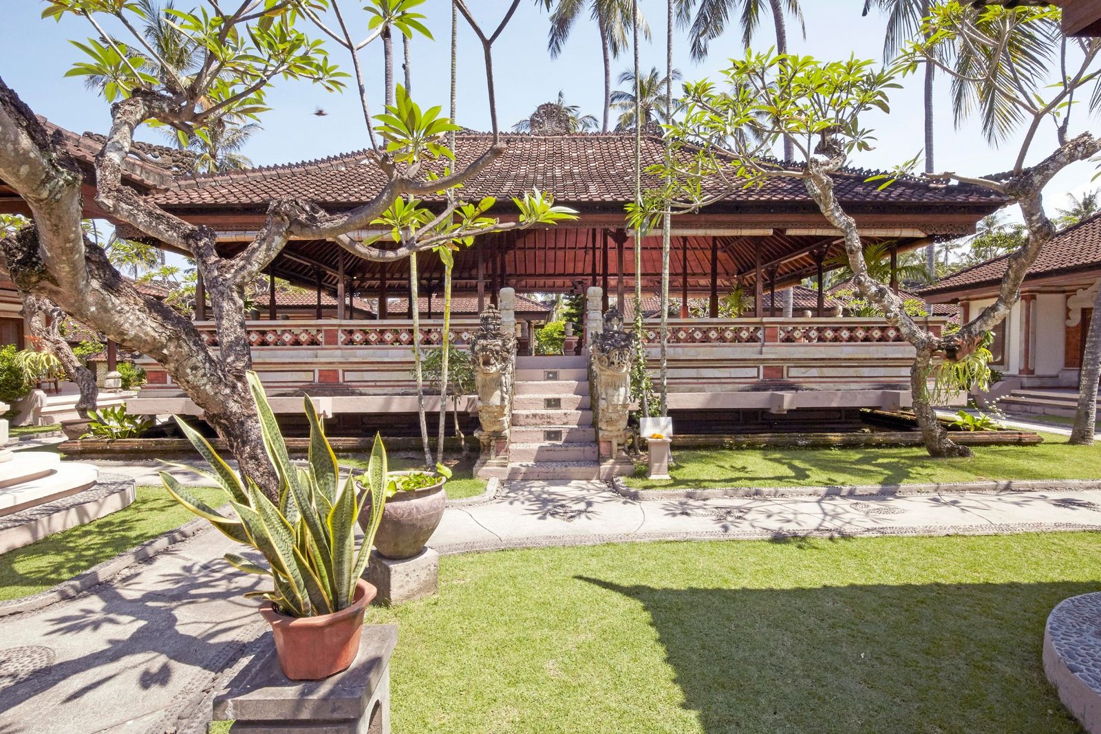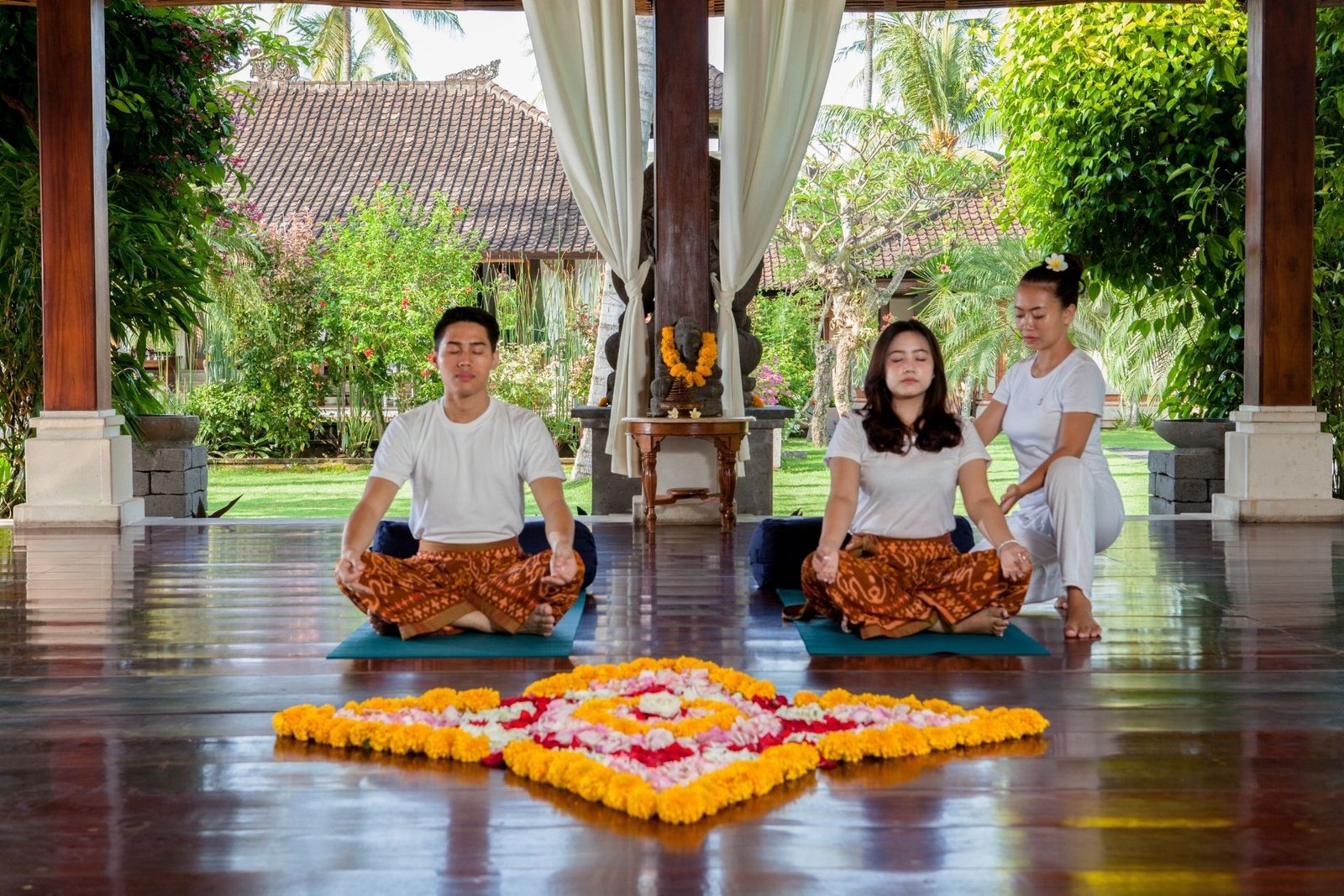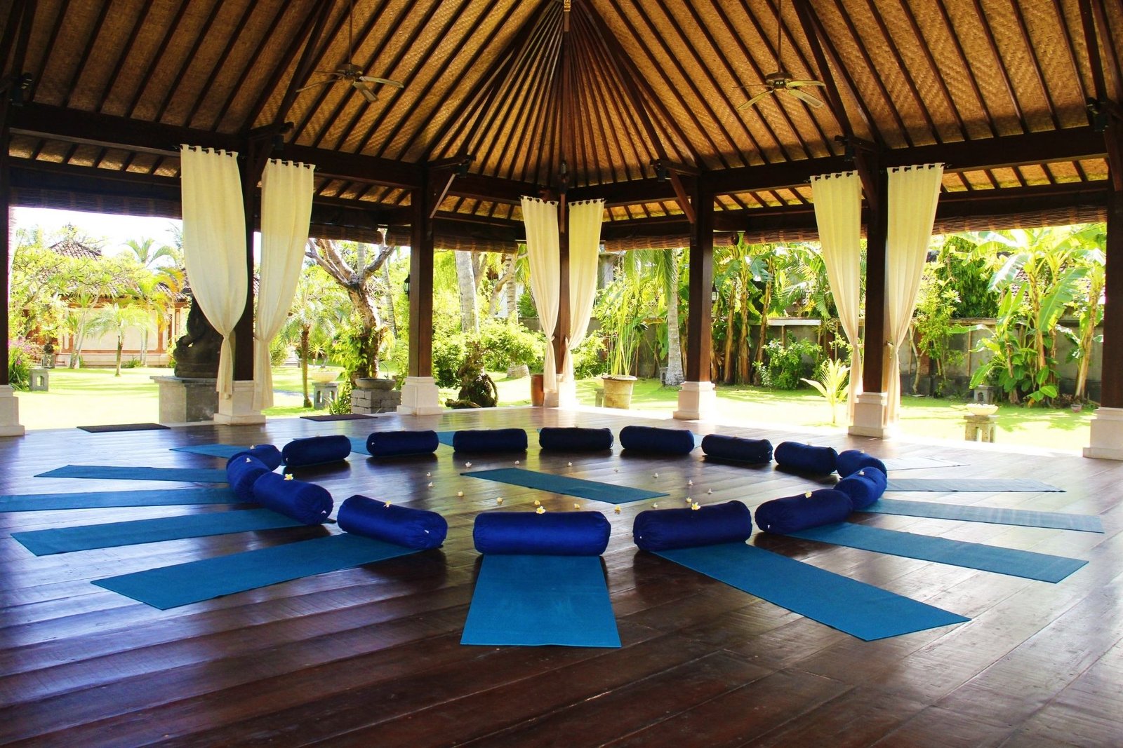 There are three experienced and qualified Balinese in-house yoga instructors who love to share the delights of yoga with you. We concentrate on the practice of asana (yoga postures), pranayama (breath control) and dhyana (meditation). Through the use of the Hatha yoga system we invite you to start and continue your yogic journey and experience feelings of total wellbeing and achieve life’s true success, that of a peaceful mind.