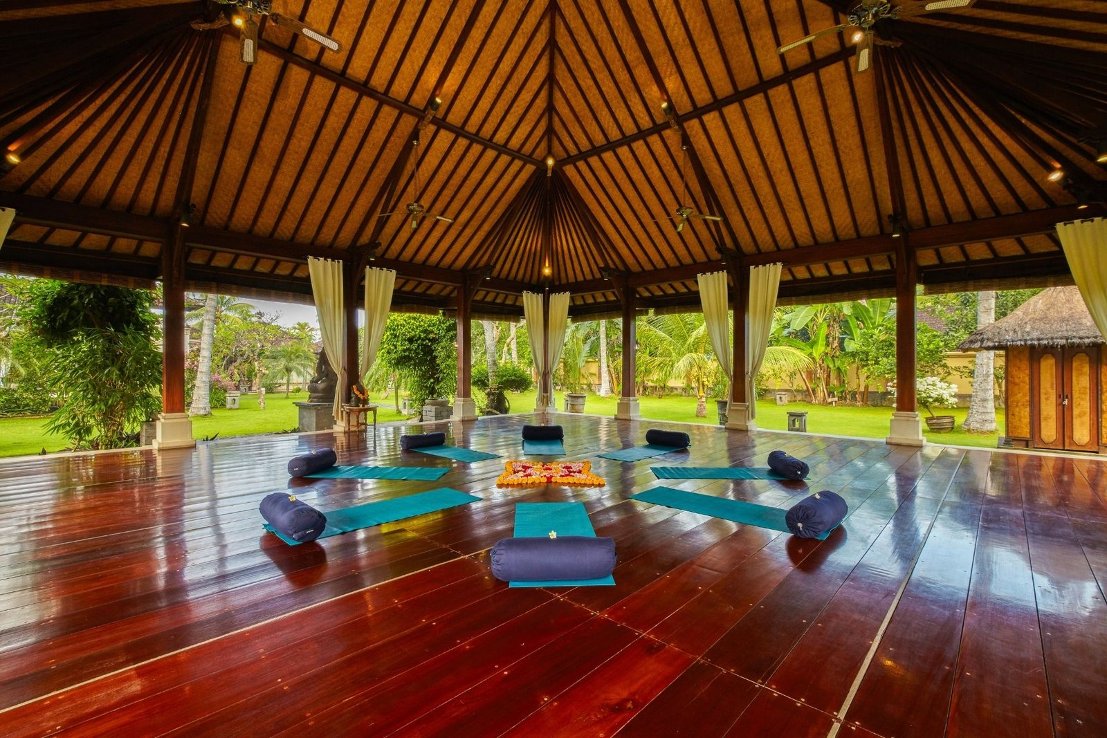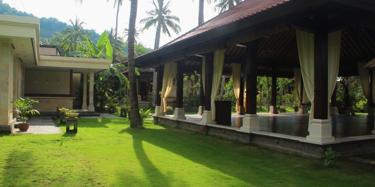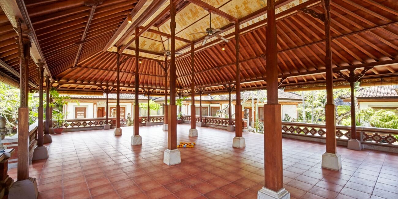 Kertagosa Meditation Pavilion is a serene, semi-open-air sanctuary perfect for those seeking peace and reflection. Spanning 209m² and rectangular, this spacious pavilion is designed to allow the gentle flow of Bali’s natural breeze, creating a harmonious environment for meditation. The open design immerses you in the surrounding beauty while maintaining privacy and focus. Whether meditating solo or with a group, we provide the ideal setting to quiet the mind and connect with your inner self in a tranquil, sacred space.